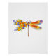 Flora de dragón floral pintada de forma artística en naranja y púrpura contrastante con amapola californiana amarilla, brillante, floreciente y flores silvestres azules sobre fondo blanco.