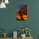 Pieza artística de la puesta de sol en el fondo, madera en el frente que se parece a un dragón.