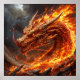 Dragón serpentino y feroz envuelto en llamas. Sus escalas son muy detalladas y muestran una mezcla de rojos profundos y naranjas feroces que sugieren un calor intenso. Los ojos feroces del dragón brillan con fuerza, capturando una sensación de poder y amenaza. Las avispas de humo y las brasas giran a su alrededor, contribuyendo a una atmósfera general de caos e intensidad. El fondo presenta nubes de tormenta oscuras, lo que aumenta el efecto dramático. Esta formidable criatura parece estar emergiendo de un feroz paisaje, dando una impresión de dominio y fuerza cruda.