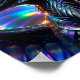 Una llamativa representación de un dragón radiante adornado con escamas brillantes, brillantes y metálicas, ambientado en un fondo vívido y colorido que muestra una gama de brillantes notas espectrales.