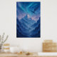 A breathtaking fantasy landscape of icy blue mountains under aurora skies with a dragon soaring above. Ideal for fans of epic fantasy art, adventure worlds, and dramatic wall décor.