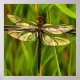 Póster Dragonfly Artificial En Marrón Y Amarillo En Verde