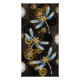 Marcos antiguos y llaves con engranajes de oro y de latón, decorados con libélulas mecánicas de vapor punk sobre fondo marrón, rayado.