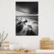 Fotografía de larga exposición de un viejo muelle rocoso que desapareció en el mar ondulado.