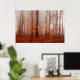 Póster Dramático bosque nublado rojo de invierno sin niev
