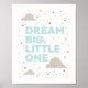 ¿Buscando el arte moderno en la guardería? ¡Aquí lo encontrarás! La colección de obras de arte mural de Splendid Supply Co. no sólo es bonita (¡sino que no es una cortesía!), sino que puede funcionar en cualquier habitación de estilo. Nuestro dulce diseño "Dream Big, Little One" hará que tu pequeño hombre o pequeña dama se vaya a dormir con buenos deseos para mañana y todos los días después.