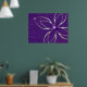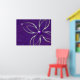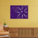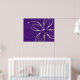 Contra un fondo kaleidoscopio abstracto de fractales de apofisis suave se encuentra una flor de cuatro petalos de fibra de plata, con una amatista brillante en el centro y pequeñas piedras redondas en las esquinas. Un ilustracion que usa el púrpura como símbolo de la realeza y la riqueza.