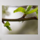 Cierre de una gota de lluvia bajo una rama el día de primavera.