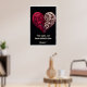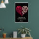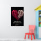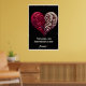 Este impactante poster presenta un intrincado diseño cardíaco contra un fondo negro profundo, que simboliza la unión armoniosa de dos almas distintas pero complementarias. La mitad izquierda del corazón brilla en rojo intenso, mientras que la derecha brilla en blanco crema luminoso, creando un poderoso contraste visual. Ambos lados están adornados con elaborados motivos giratorios que recuerdan al barroco o al arte tribal, con líneas de tallado detalladas que fluyen a la perfección entre las dos mitades. El desplazamiento ornamental crea una sensación de movimiento y conexión entrelazada, lo que sugiere el complejo vínculo entre dos individuos. En la parte inferior de la imagen, un guión elegante dice "Dos almas, una con el corazón grabado en amor para siempre", reforzando el tema de la unión eterna. El sofisticado diseño combina elementos de la imaginería romántica tradicional con un estilo artístico moderno y casi místico que lo eleva más allá de las imágenes valentinas convencionales.