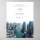This elegant Dubai skyline watercolor wedding welcome sign can be personalized with your information in modern typography. Designed by Thisisnotme©
