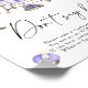 La invitación muestra acuarela, cuna de bebé, un vivero móvil en forma de nubes redondas moradas, juguetes para niños: un elefante de roedor, un pato sobre ruedas, un oso de peluche, un conejito, un bib, un pacificador, una pirámide.