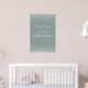Elegante letrero de bienvenida para ducha de novia en verde agave con confeti de diamantes plateados brillantes. Contáctenos para obtener ayuda con la personalización o productos coincidentes.