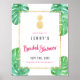 Moderno, atrevido poster de ducha de novia dorada y rosa caliente con acentos rosados calientes, piña de Relieve metalizado de oro falso y hojas tropicales acuáticas alrededor del borde.