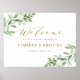 Bienvenidos a la ducha de pareja con este elegante letrero de bienvenida personalizable. Cuenta con ilustraciones de acuarela de vegetación y flores blancas con caligrafía caprichosa. Personalice este letrero de bienvenida de la ducha de pareja de acuarela agregando sus propios detalles. Este letrero de bienvenida de la ducha de pareja es perfecto para eventos de primavera e invierno.