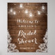 Póster Ducha nupcial Rústica Madera Mason Jar Luces Lace