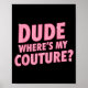 Póster Dude Where's My Couture Funny Girls Quote Gift Wom