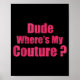 Póster Dude Where's My Couture Funny Sarcastic Saying Wom