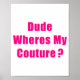 Póster Dude Where's My Couture Sarcastic Funny Saying Shi