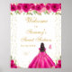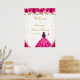Este elegante y glamoroso cartel de bienvenida de dieciséis años presenta a una bella princesa con el pelo oscuro y la piel oscura en un vestido de bola rosa caliente. El texto combina el guión manuscrito y las fuentes sans serif modernas para un aspecto elegante y sofisticado. Los arreglos florales, las mariposas y los confeti dorados crean una perfecta mezcla de rústico y moda. Gráficos de www.etsy.com/uk/shop/SunflowerDayLove