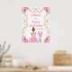 Este dulce cartel de bienvenida consta de un marco dorado elegante, una bella princesa con el pelo rojo y un vestido rosa, flores y un globo. Es perfecto para una dulce fiesta de 16 años.