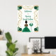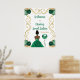 Este dulce cartel de bienvenida consta de un marco dorado elegante, una bella princesa de piel oscura y un vestido verde, flores y un globo. Es perfecto para una dulce fiesta de 16 años.