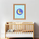 Este adorable poster se vería muy bien en el cuarto de un niño o en el dormitorio de un niño pequeño. La imagen es un elefante bebé que duerme en una luna creciente con una forma circular detrás, y rodeado de estrellas en un fondo azul claro. Los colores principales de la imagen son azul y amarillo. También hay una opción para obtener este poster con un marco o puede comprar su propio marco por separado. Esto sería un gran regalo para una ducha de bebé o cuando se visita a una madre y su recién nacido.