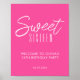 Moderno poster de fiesta de 16 cumpleaños con mensaje de bienvenida; en rosa caliente con texto de escritura blanca. Elige tu tamaño. El texto puede ser personalizado, lo que lo hace perfecto para una celebración de cumpleaños 16 para chicas. Elementos coincidentes disponibles. Use el botón de mensaje que aparece a continuación para obtener ayuda sobre la personalización y las solicitudes especiales.