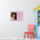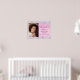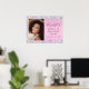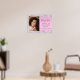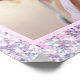 Bonito, glamuroso y femenino cartel de bienvenida de cumpleaños de dulces 16 con su foto, confeti falso brillante holográfico púrpura, rosa y plateado a lo largo de los bordes contra un fondo rosa y su nombre en una suave letra de moda gris.