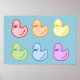 Un diseño retro, bonito y de cocina, presenta pequeños patitos con colores arcoiris.