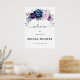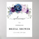 Elegante poster de ducha con hilo azul polvoriento azul violeta de lila con motivos florales y de bienvenida con elegante ramo de azul polvoriento, navy, púrpura, flores de rosa de color lila y hojas de eucalipto verde salado. Comuníquese conmigo para obtener ayuda sobre la personalización o si necesita cualquier otro producto con este diseño.