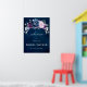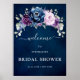 Elegante poster de ducha con hilo azul polvoriento azul violeta de lila con motivos florales y de bienvenida con elegante ramo de azul polvoriento, navy, púrpura, flores de rosa de color lila y hojas de eucalipto verde salado. Comuníquese conmigo para obtener ayuda sobre la personalización o si necesita cualquier otro producto con este diseño.
