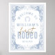 ¡Bienvenidos a su primer cumpleaños con este polvoriento fiesta azul de temática occidental! Con fuentes rodeo y encanto rústico, este poster de bienvenida azul claro es perfecto para tomar fotos y marcar el tono para una celebración del Lejano Oeste.