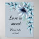 Dusty blue, gris floral el amor es dulce póster de baby shower nupcial. Este diseño está basado en mi obra de arte original. Un diseño moderno, simple, minimalista con gráficos de acuarela pintados a mano te dará buen humor.