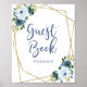Póster Dusty Blue Gold acuarela Floral Rótulo de libros p