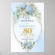 Póster Dusty Blue Hydrangea Boho Floral 80th birthday