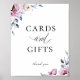 Flores acuáticas elegantes y marco follaje en tonos modernos de azul polvoriento, malva y blanco, boda personalizado poster de señas "cartas y regalos". El estilo moderno de diseño de tipografía combina el guión con el tipo negrita.