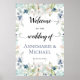 ¡Hágale saber a tus invitados que están en el lugar correcto! Un marco espantoso de flores acuarelas en azul polvoriento y verde sabio. Si desea este diseño en otros carteles bodas, por favor envíeme un correo electrónico a shutterbug600@yahoo.com.