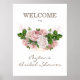 Hermoso, elegante rosa rubor y rosa polvorienta floral vintage en acuarela sobre blanco, póster / pancarta de despedida de soltera botánico "Bienvenida a la Despedida de Soltera". Personalizado con los nombres de la novia y el novio y la fecha de su boda. Contacte con nosotros para obtener ayuda con la personalización y los productos coincidentes.