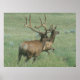 Póster de Alce Toro en Terciopelo. Hermosos alces toros en abrigos de verano y cuernos de terciopelo, el espacio entre las puntas del toro más grande le da a un cuerno una apariencia casi de reno.