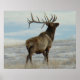 Bull Elk Lucky 13 Bull Poster. Este enorme y viejo toro con trece puntos en su enorme reja está llegando al final de sus años "primos", pero sigue recortando una figura intimidante mientras se desliza orgullosamente sobre las llanuras nevadas.