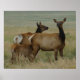 Póster de Alce hembra y cría. Cuando las alces hembras se sienten amenazadas rodean a las crías como estas dos vacas están haciendo, en este punto acercarse más sería imprudente.Los alces son animales grandes y cargarán si sienten que estás demasiado cerca.