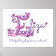 Bonito E monograma poster de nombre artístico perfecto para un dormitorio para chicas o sala de juegos en tonos blancos, rosados y morados. Personalice el nombre de su hijo empezando por E, y mencione el significado para darle un toque realmente personalizado al dormitorio o guardería de su hijo, este ejemplo es para el nombre que Eliza prometió a Dios, precioso y amable. La impresión poster es ideal para un recién nacido, un bautizo o una ducha de bebé. © Exclusivo E monograma corazones y flores descripción del dibujo y diseño gráfico de arte de Sarah Trett. www.sarahtrett.com para www.mylittleeden.com