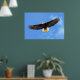 Foto de un águila volando contra un brillante cielo azul con algunas nubes pequeñas, sus alas estiradas. Esta es una foto de un águila calva madura en vuelo tomada en la Columbia Británica, Canadá, que tiene una alta concentración de este majestuoso rapero. ¡Un águila voladora es un espectáculo increíble!