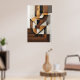 Abstract vertical composition with interlocking geometric shapes in shades of brown, ochre, black, and white. Texture reminiscent of aged paper and artistic collage. Sophisticated design ideal for modern and minimalist decor. Bring structural art and timeless elegance to your space.