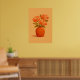 Elevate your living space with this stunning minimalist botanical wall poster, featuring a vibrant bouquet of orange and peach flowers in a rustic terracotta vase. This design is rendered in a modern gouache style, showcasing rich, painterly textures and a warm, earthy colour palette.