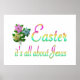 Share with others what Easter is all about with this colorful design with painted flowers and the words Easter, it's all about Jesus.