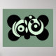 Sumérjase en un mundo de simetría dinámica con esta sorprendente pieza abstracta. Las formas negras audaces convergen y se superponen con delicados acentos verde menta, formando una fusión de círculos y curvas que se sienten futuristas y orgánicos. La armoniosa interacción de formas del diseño crea un ritmo visual, perfecto para los que aprecian el arte geométrico moderno con un toque. Esta obra de arte, situada en un entorno verde silencioso, aporta un toque de sofisticación vanguardista a cualquier habitación.