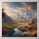 Un valle majestuoso se despliega ante montañas coronadas de nieve, bañado en nubes doradas del atardecer. La serenidad del río que serpentea a través del paisaje fusiona la grandiosidad con la paz, convirtiendo la naturaleza en una obra maestra atemporal.