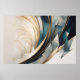 Líneas fluidas y formas agudas se entrelazan en una elegante moción entre tonos de marfil y azul profundo. Una danza abstracta que transmite expansión, energía y armonía, como si el espacio se desplegara en olas de luz y misterio.