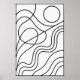 Ilustración abstracta en blanco y negro que fusiona curvas suaves y formas geométricas en un estilo de arte de línea contemporáneo. Su diseño minimalista y elegante la hace ideal para decorar espacios modernos, transmitiendo equilibrio y sofisticación. Perfecta para impresiones artísticas, pósters y enmarcados.